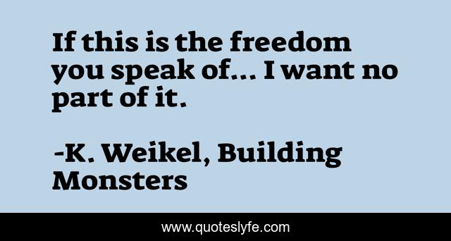 "K. Weikel, Building Monsters Quotes." Quoteslyfe.com, 2025. Fri. 05 Dec. 2025. <https://www.quoteslyfe.com/quote/If-this-is-the-freedom-you-speak-54871>.
