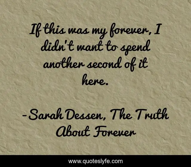 This page presents the quote "If this was my forever, I didn't want to spend another second of it here.". Author of this quote is Sarah Dessen, The Truth About Forever. This quote is about carpe-diem, forever,.