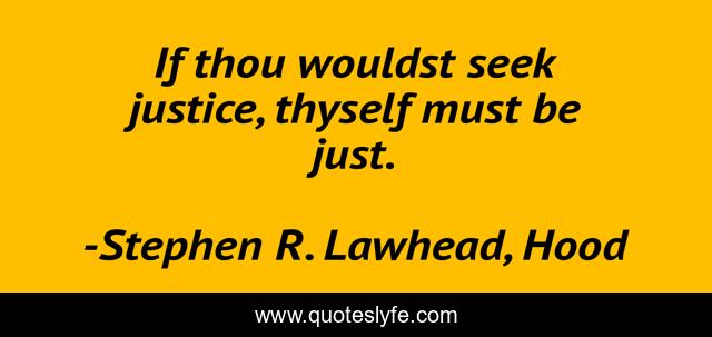 This page presents the quote "If thou wouldst seek justice, thyself must be just.". Author of this quote is Stephen R. Lawhead, Hood. This quote is about justice, teaching, advice, hood,.