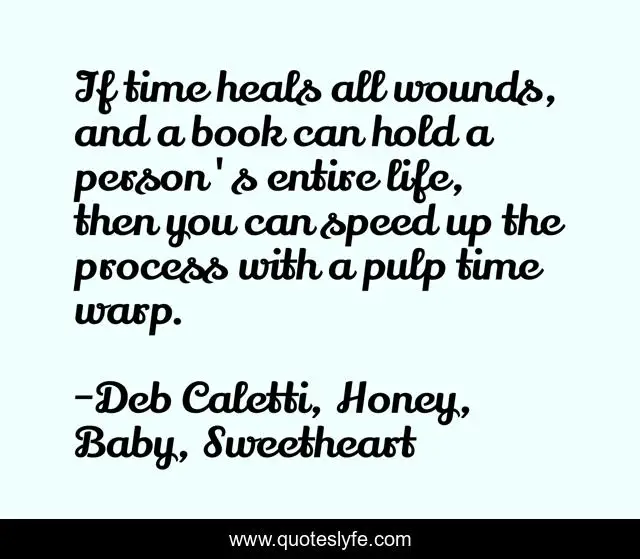This page presents the quote "If time heals all wounds, and a book can hold a person's entire life, then you can speed up the process with a pulp time warp.". Author of this quote is Deb Caletti, Honey, Baby, Sweetheart. This quote is about books, healing, reading,.
