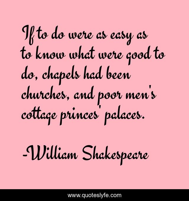 This page presents the quote "If to do were as easy as to know what were good to do, chapels had been churches, and poor men's cottage princes' palaces.". Author of this quote is William Shakespeare. This quote is about good, easy,.