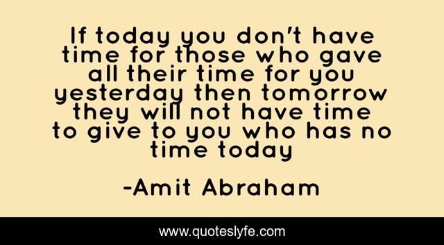 This page presents the quote "If today you don't have time for those who gave all their time for you yesterday then tomorrow they will not have time to give to you who has no time today". Author of this quote is Amit Abraham. This quote is about time, yesterday, today, tomorrow,.