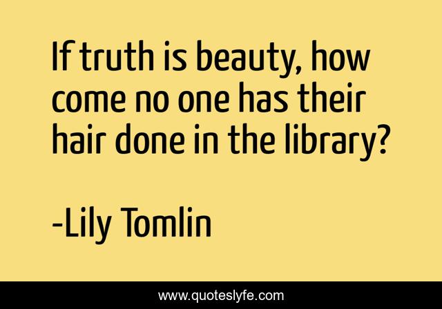 This page presents the quote "If truth is beauty, how come no one has their hair done in the library?". Author of this quote is Lily Tomlin. This quote is about funny, comedy, truth, library,.