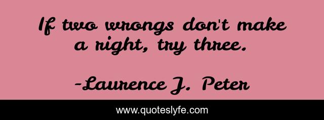 "Laurence J. Peter Quotes." Quoteslyfe.com, 2025. Fri. 05 Dec. 2025. <https://www.quoteslyfe.com/quote/If-two-wrongs-don-t-make-a-316756>.