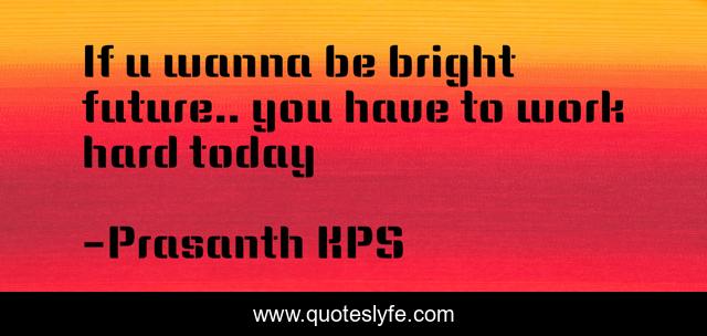 This page presents the quote "If u wanna be bright future.. you have to work hard today". Author of this quote is Prasanth KPS. This quote is about inspirational-attitude, enthusiasm, inspirational, inspirational-thought,.