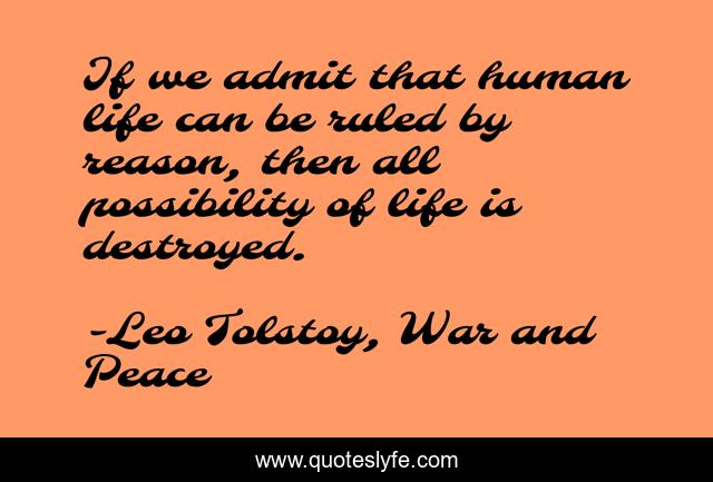This page presents the quote "If we admit that human life can be ruled by reason, then all possibility of life is destroyed.". Author of this quote is Leo Tolstoy, War and Peace. This quote is about life, reason,.
