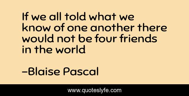 This page presents the quote "If we all told what we know of one another there would not be four friends in the world". Author of this quote is Blaise Pascal. .