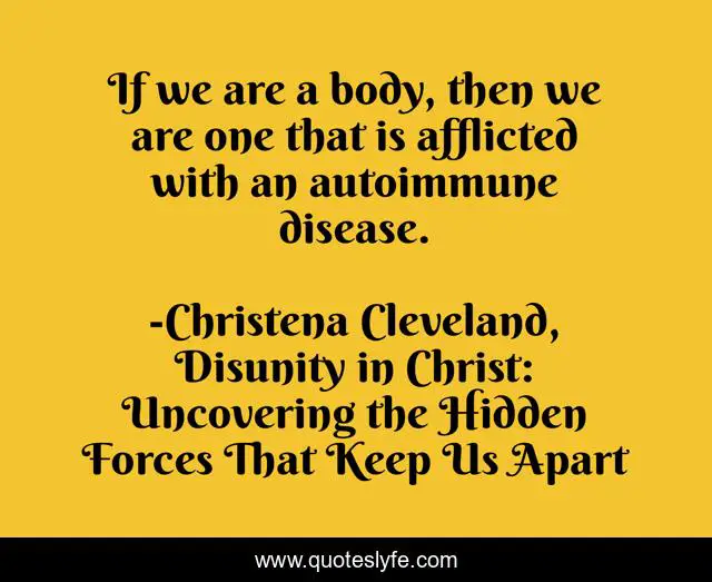 "Christena Cleveland, Disunity in Christ: Uncovering the Hidden Forces That Keep Us Apart Quotes." Quoteslyfe.com, 2025. Sun. 07 Dec. 2025. <https://www.quoteslyfe.com/quote/If-we-are-a-body-then-we-61942>.
