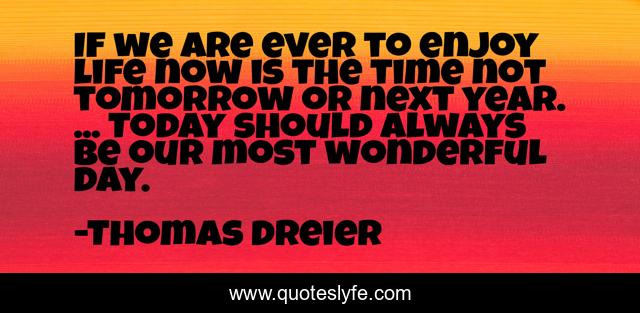 This page presents the quote "If we are ever to enjoy life now is the time not tomorrow or next year. ... Today should always be our most wonderful day.". Author of this quote is Thomas Dreier. .