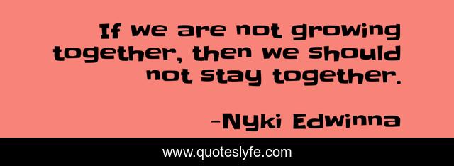 This page presents the quote "If we are not growing together, then we should not stay together.". Author of this quote is Nyki Edwinna. This quote is about relationships, love, advice, quotes, inspirational, enthusiasm, dating, affection,.