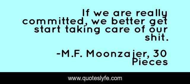 This page presents the quote "If we are really committed, we better get start taking care of our shit.". Author of this quote is M.F. Moonzajer, 30 Pieces. This quote is about start, care, committed,.
