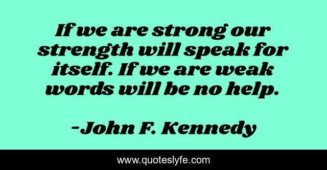 This page presents the quote "If we are strong our strength will speak for itself. If we are weak words will be no help.". Author of this quote is John F. Kennedy. .