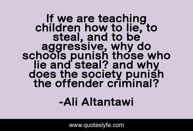 This page presents the quote "If we are teaching children how to lie, to steal, and to be aggressive, why do schools punish those who lie and steal? and why does the society punish the offender criminal?". Author of this quote is Ali Altantawi. This quote is about lie, criminal, offender, punish, society, teaching, education, steal, children,.
