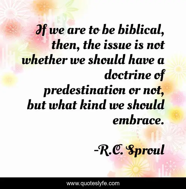 This page presents the quote "If we are to be biblical, then, the issue is not whether we should have a doctrine of predestination or not, but what kind we should embrace.". Author of this quote is R.C. Sproul. .