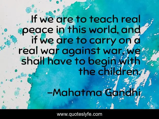 This page presents the quote "If we are to teach real peace in this world, and if we are to carry on a real war against war, we shall have to begin with the children.". Author of this quote is Mahatma Gandhi. This quote is about world, peace, children,.
