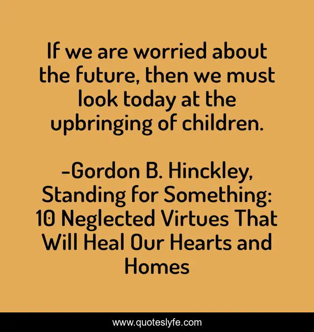 "Gordon B. Hinckley, Standing for Something: 10 Neglected Virtues That Will Heal Our Hearts and Homes Quotes." Quoteslyfe.com, 2025. Mon. 08 Dec. 2025. <https://www.quoteslyfe.com/quote/If-we-are-worried-about-the-future-99192>.
