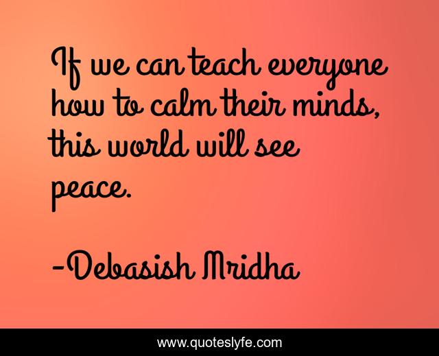 This page presents the quote "If we can teach everyone how to calm their minds, this world will see peace.". Author of this quote is Debasish Mridha. This quote is about philosophy, debasish-mridha, quotes, inspirational, calm-minds, enthusiasm, teach, education, debasish-mridha-m-d,.