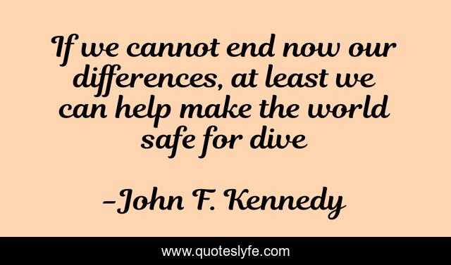 This page presents the quote "If we cannot end now our differences, at least we can help make the world safe for dive". Author of this quote is John F. Kennedy. This quote is about diversity, peace, tolerance,.