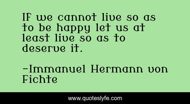 This page presents the quote "If we cannot live so as to be happy let us at least live so as to deserve it.". Author of this quote is Immanuel Hermann von Fichte. .