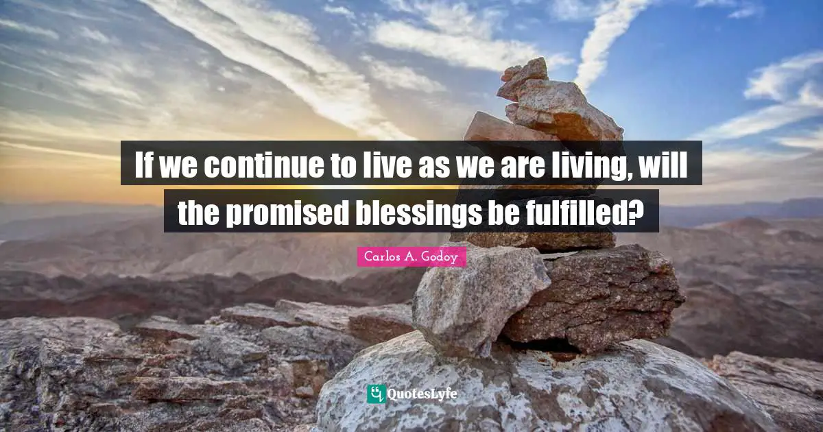 This page presents the quote "If we continue to live as we are living, will the promised blessings be fulfilled?". Author of this quote is Carlos A. Godoy. This quote is about ifs, fulfilled, blessing,.