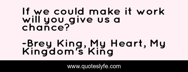 This page presents the quote "If we could make it work will you give us a chance?". Author of this quote is Brey King, My Heart, My Kingdom's King. This quote is about romance, couple, love, paranormal-romance, affection,.