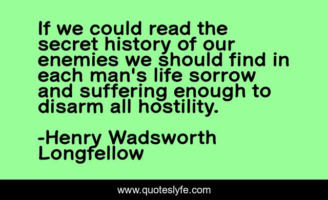 This page presents the quote "If we could read the secret history of our enemies we should find in each man's life sorrow and suffering enough to disarm all hostility.". Author of this quote is Henry Wadsworth Longfellow. .