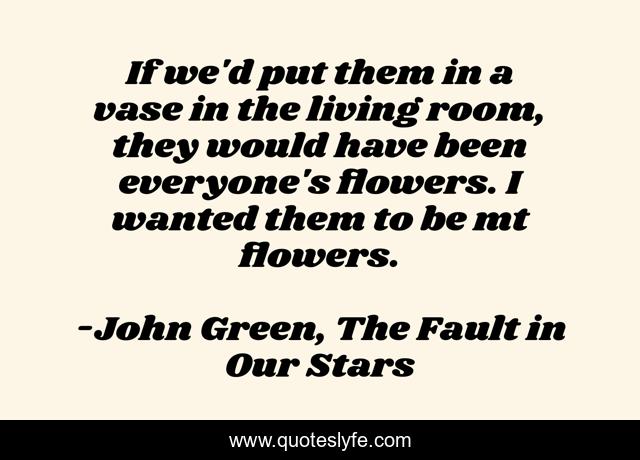 This page presents the quote "If we'd put them in a vase in the living room, they would have been everyone's flowers. I wanted them to be mt flowers.". Author of this quote is John Green, The Fault in Our Stars. .