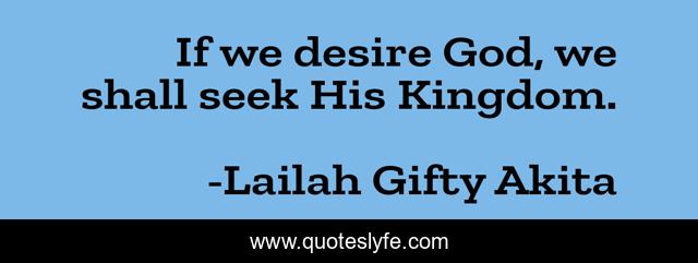 This page presents the quote "If we desire God, we shall seek His Kingdom.". Author of this quote is Lailah Gifty Akita. This quote is about faith, motivation, christian, god, religion-and-philosophy, seek,.