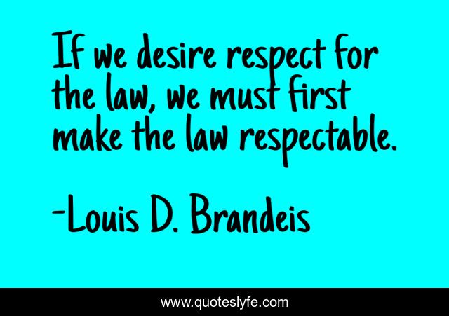 This page presents the quote "If we desire respect for the law, we must first make the law respectable.". Author of this quote is Louis D. Brandeis. This quote is about desire, law, legal,.