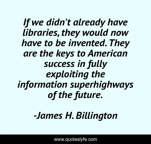 This page presents the quote "If we didn't already have libraries, they would now have to be invented. They are the keys to American success in fully exploiting the information superhighways of the future.". Author of this quote is James H. Billington. .