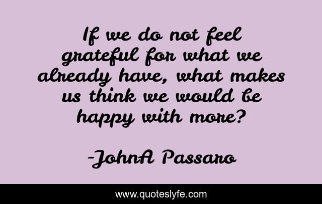 This page presents the quote "If we do not feel grateful for what we already have, what makes us think we would be happy with more?". Author of this quote is JohnA Passaro. This quote is about gratitude, life, motivation, inspiration,.