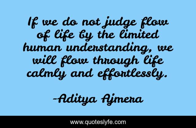 This page presents the quote "If we do not judge flow of life by the limited human understanding, we will flow through life calmly and effortlessly.". Author of this quote is Aditya Ajmera. This quote is about life, mindfulness, flow, understanding,.