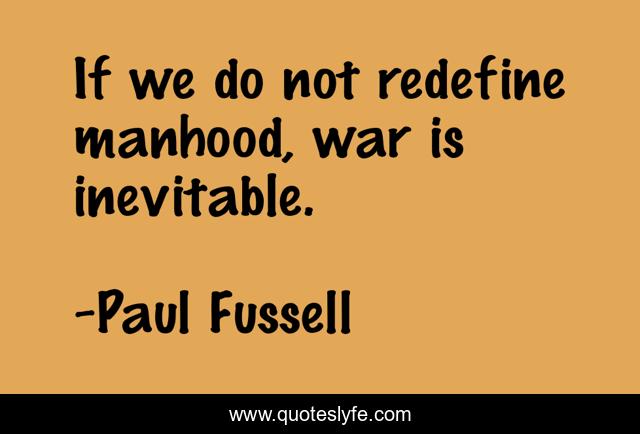 This page presents the quote "If we do not redefine manhood, war is inevitable.". Author of this quote is Paul Fussell. This quote is about gender, manhood, war, aggression, gender-stereotypes,.