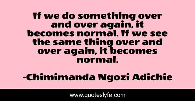 This page presents the quote "If we do something over and over again, it becomes normal. If we see the same thing over and over again, it becomes normal.". Author of this quote is Chimimanda Ngozi Adichie. .