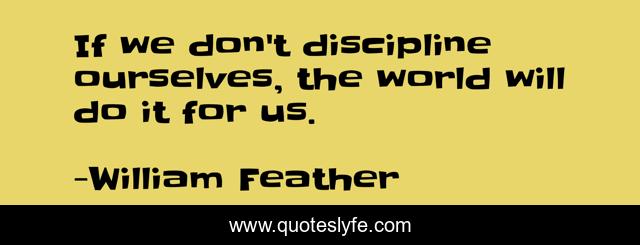 This page presents the quote "If we don't discipline ourselves, the world will do it for us.". Author of this quote is William Feather. .