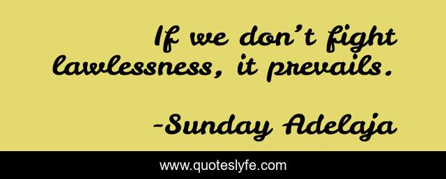 This page presents the quote "If we don’t fight lawlessness, it prevails.". Author of this quote is Sunday Adelaja. This quote is about lawlessness, prevail, fight,.