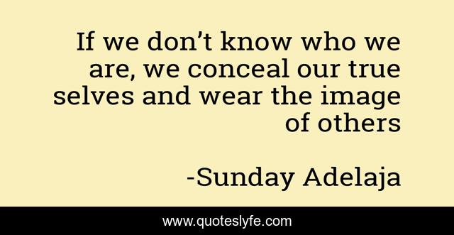 This page presents the quote "If we don’t know who we are, we conceal our true selves and wear the image of others". Author of this quote is Sunday Adelaja. This quote is about self-image, identity, true-identity, personality,.