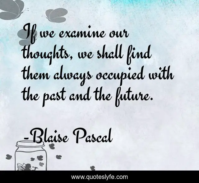 This page presents the quote "If we examine our thoughts, we shall find them always occupied with the past and the future.". Author of this quote is Blaise Pascal. This quote is about past, future, thoughts,.