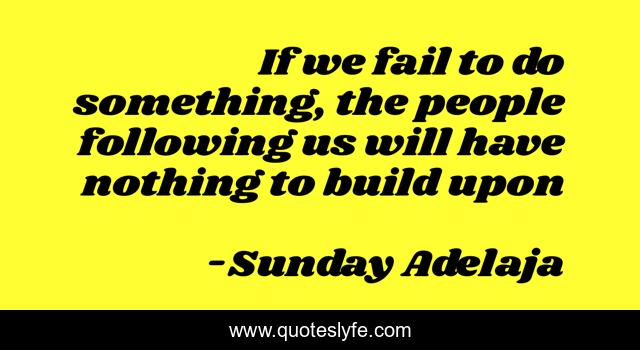 This page presents the quote "If we fail to do something, the people following us will have nothing to build upon". Author of this quote is Sunday Adelaja. This quote is about fulfillment, failure, calling, purpose, foundation,.