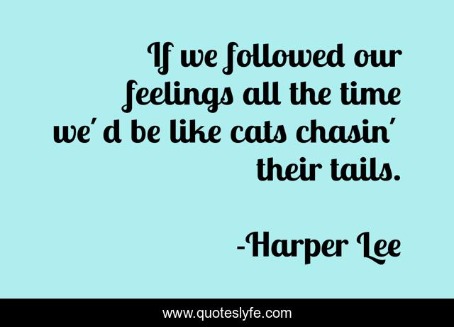 This page presents the quote "If we followed our feelings all the time we´d be like cats chasin´ their tails.". Author of this quote is Harper Lee. This quote is about enthusiasm, humour, inspirational,.