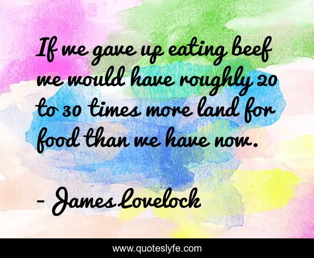 This page presents the quote "If we gave up eating beef we would have roughly 20 to 30 times more land for food than we have now.". Author of this quote is James Lovelock. This quote is about environment, meat-eating,.