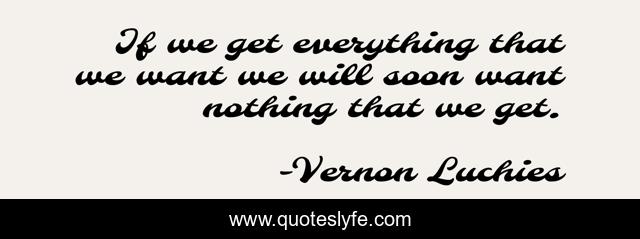 This page presents the quote "If we get everything that we want we will soon want nothing that we get.". Author of this quote is Vernon Luchies. .