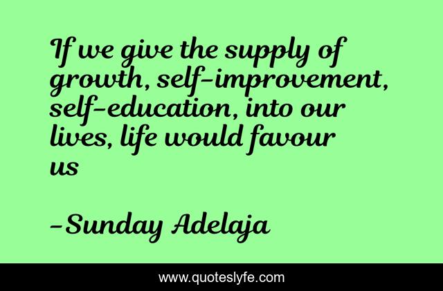 This page presents the quote "If we give the supply of growth, self-improvement, self-education, into our lives, life would favour us". Author of this quote is Sunday Adelaja. This quote is about we, self-ducation, supply, give, favour, growth, lives, self-improvement, our,.