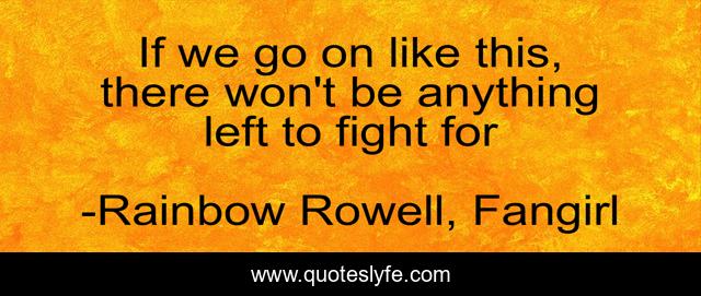 This page presents the quote "If we go on like this, there won't be anything left to fight for". Author of this quote is Rainbow Rowell, Fangirl. This quote is about worth, fighting, fight,.