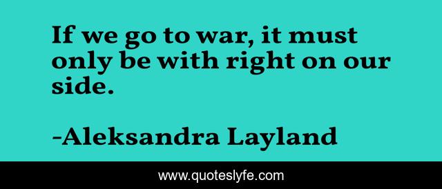This page presents the quote "If we go to war, it must only be with right on our side.". Author of this quote is Aleksandra Layland. This quote is about rightness, right, war, warfare,.