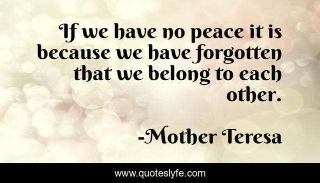 This page presents the quote "If we have no peace it is because we have forgotten that we belong to each other.". Author of this quote is Mother Teresa. .