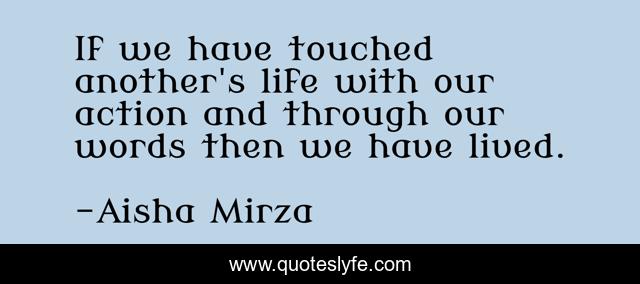 "Aisha Mirza Quotes." Quoteslyfe.com, 2025. Fri. 05 Dec. 2025. <https://www.quoteslyfe.com/quote/If-we-have-touched-another-s-life-210723>.