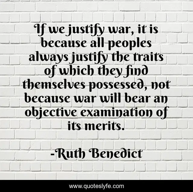 "Ruth Benedict Quotes." Quoteslyfe.com, 2025. Mon. 08 Dec. 2025. <https://www.quoteslyfe.com/quote/If-we-justify-war-it-is-because-285878>.