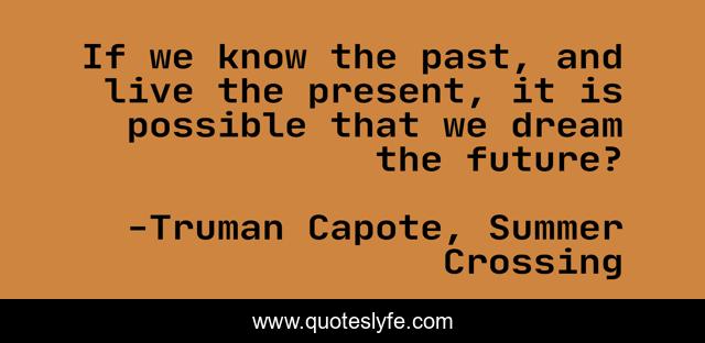 This page presents the quote "If we know the past, and live the present, it is possible that we dream the future?". Author of this quote is Truman Capote, Summer Crossing. This quote is about past, future, present,.