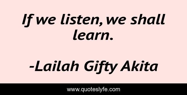 "Lailah Gifty Akita Quotes." Quoteslyfe.com, 2025. Sun. 07 Dec. 2025. <https://www.quoteslyfe.com/quote/If-we-listen-we-shall-learn-37710>.